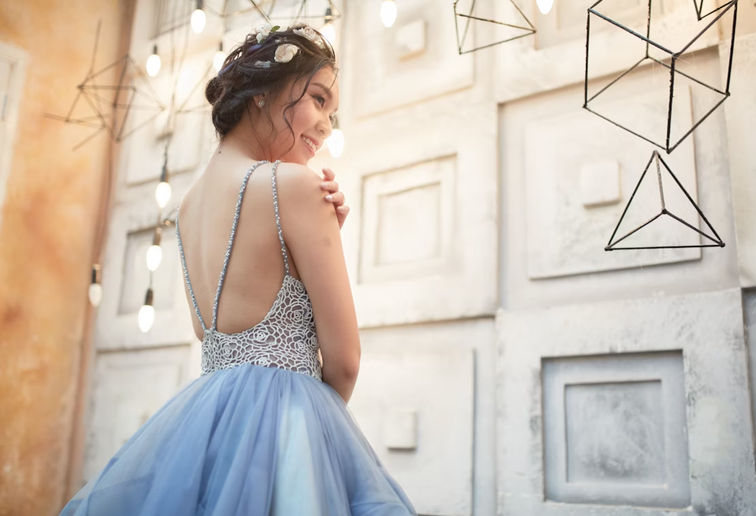 Aquamarine Lace Halter Mini Dress